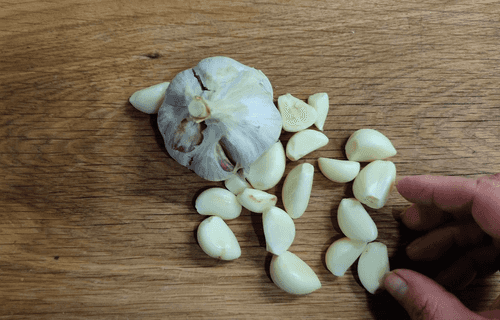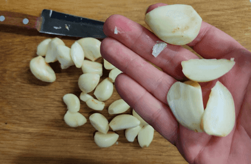 If the garlic cloves are large, cut them lengthwise into several pieces.