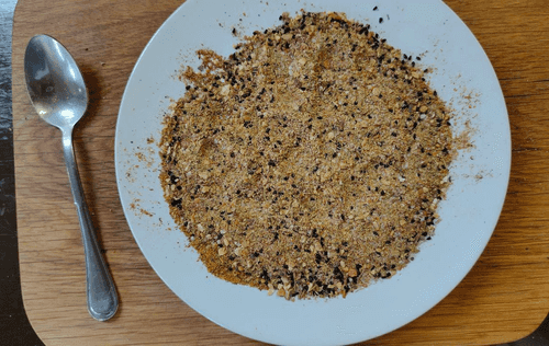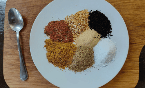 Mix all the spices on a plate. Taste it to see if it's enough; if there's not enough salt, add more.
