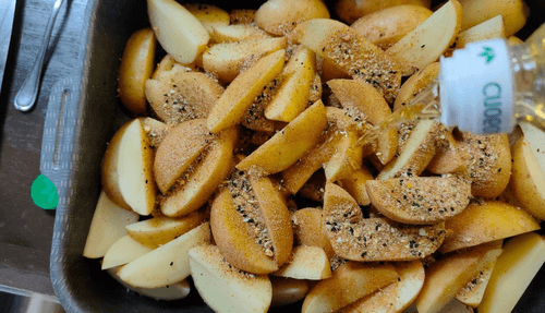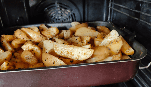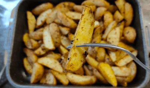 You can check the readiness of the potatoes with a fork or simply taste them. Visually, they should be golden brown with a slight crust.