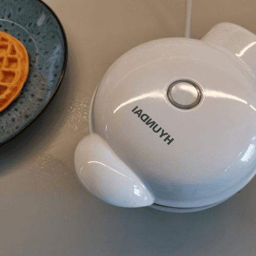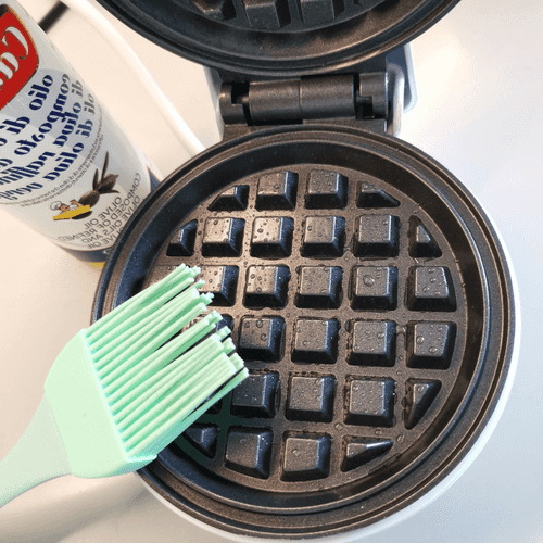 Grease the waffle maker with olive oil.