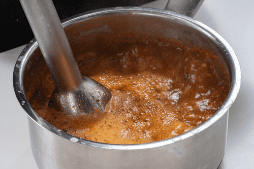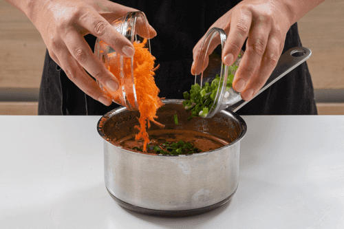 After 5 hours, pour the cabbage brine into a saucepan, add rice flour and sugar. Bring to a boil and simmer for 5 minutes.