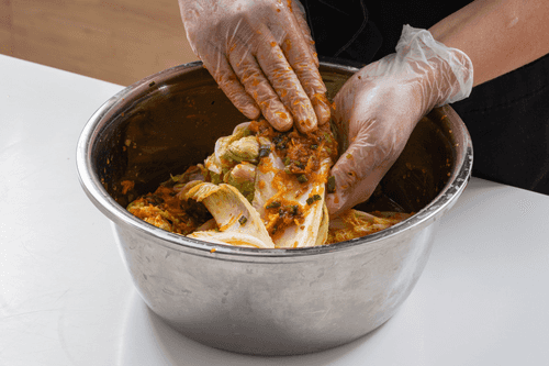 Spread the paste on the cabbage in such a way that it touches every leaf.