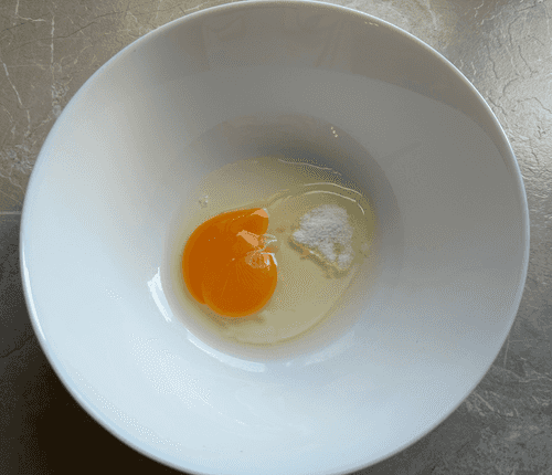 Crack an egg into a bowl and add salt.