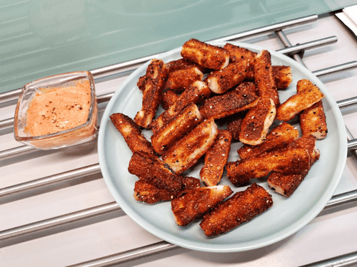 Halloumi cheese appetizer is a culinary creation where simplicity meets rich flavor. Originating from the Mediterranean, halloumi is known for its dense texture that allows it to brown perfectly on the grill or pan while remaining firm inside. Fried cheese develops a crispy crust outside and softness inside, while spicy seasonings and aromatic adjika add zest to the dish. The appetizer is complemented by a velvety sauce made from mayonnaise and tomato paste, enhancing the creamy notes of the cheese and adding a slight tanginess. It’s an ideal snack for evening gatherings or a unique addition to main courses.