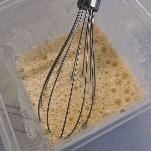 Whisk vigorously with a whisk or mixer.