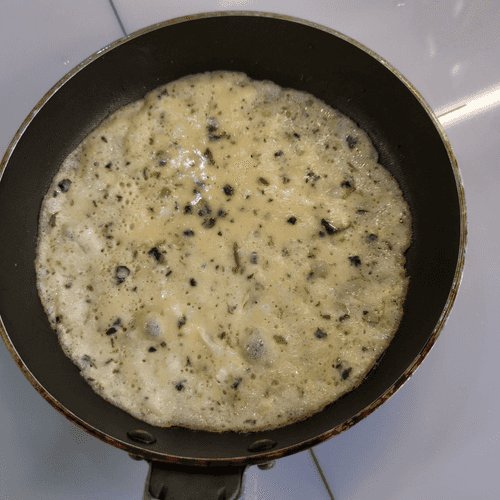 Pour a small amount of the mixture and spread it evenly in the pan.