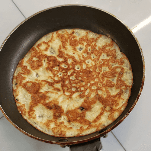 Once the bottom is browned, flip it and reduce the heat.