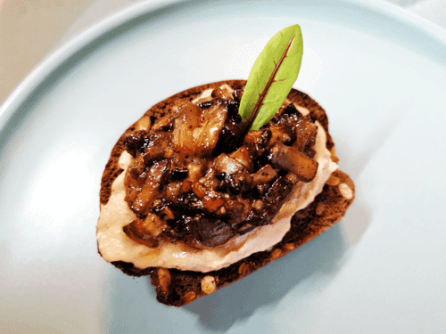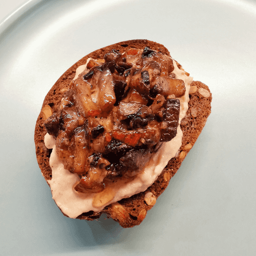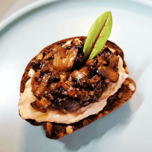 Sandwich with pate and mushrooms