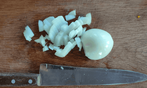 Chop the onion finely as well.