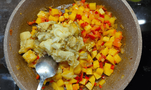 Add the removed pulp to the other vegetables and mix.