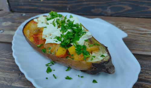 Баклажаны, запеченные с овощами и брынзой, – это гармония вкусов и текстур, воплощающая в себе богатство средиземноморской кухни. Корни рецепта уходят в Европу, где овощи традиционно являются основой множества блюд. Запеченные баклажаны становятся мягкими, нежными и приобретают насыщенный вкус благодаря чесноку и топленому маслу. Начинка из картофеля, сладкого перца, томатов и лука делает блюдо сочным, а брынза добавляет пикантную солёность и кремовую текстуру. Зелень завершает композицию свежестью и ароматом. Это блюдо не только красиво выглядит, но и идеально подходит как для семейного ужина, так и для праздничного стола. Его можно подавать как самостоятельное блюдо или как гарнир к мясу или рыбе, создавая уютную атмосферу и наслаждение вкусом.