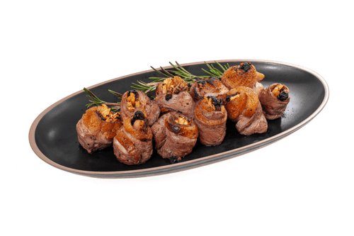 Рулетики из утиной грудки — это изысканное блюдо европейской кухни, которое прекрасно украсит праздничный стол. Исторически утка считалась символом аристократической кухни благодаря своему насыщенному вкусу. Здесь же тонкие ломтики утки, пропитанные ароматом коньяка, идеально сочетаются с нежной сладостью чернослива и яблок, дополненные свежими нотами розмарина. Медовая глазурь придает рулетикам аппетитный блеск и карамелизованный оттенок, делая их неотразимыми. Их можно подавать как горячую закуску, чтобы раскрыть глубину вкуса, или охлажденными — для более утонченного гастрономического наслаждения. Это блюдо демонстрирует баланс вкусов: легкая кислинка фруктов, пряность розмарина и насыщенность утиного мяса создают уникальное гастрономическое впечатление, которое останется в памяти гостей.