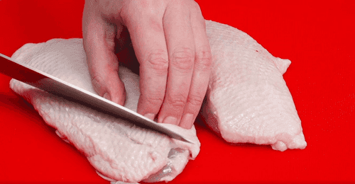 Make grid-like cuts on the skin of each breast, trying not to touch the meat.