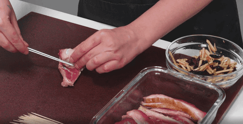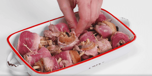 Roll the slices into rolls, secure with a toothpick, season with salt and pepper. Cover with plastic wrap and refrigerate for 1 hour to allow the duck slices to soak in the cognac.