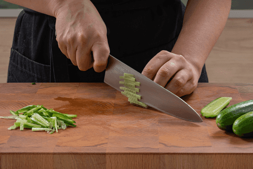 Cut the cucumbers into small sticks.