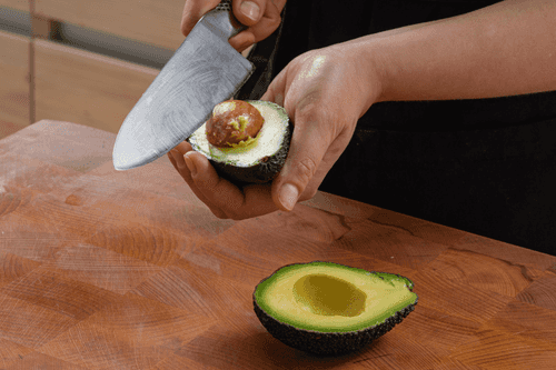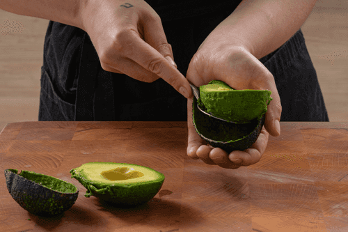 Cut the avocado in half and remove the pit.