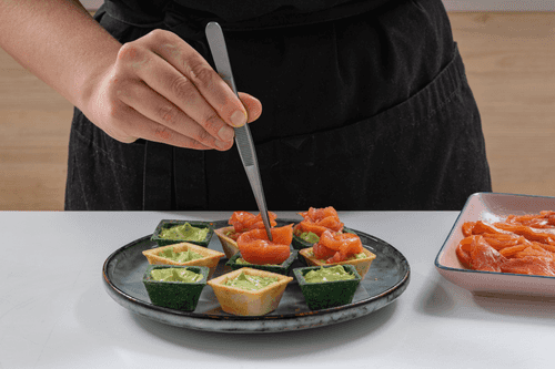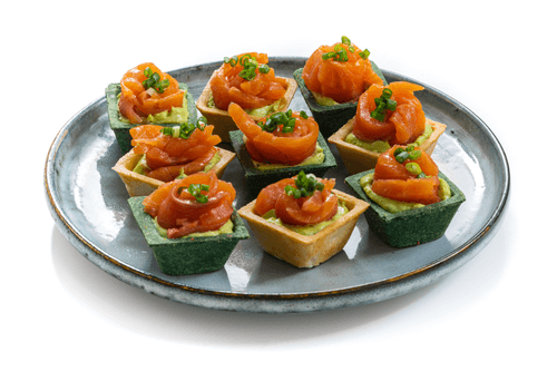 Tartlets with red fish and avocado