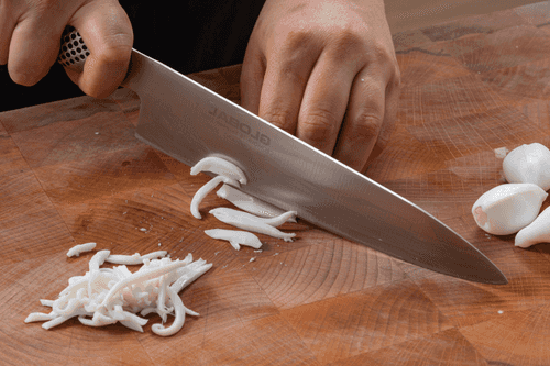 Cut the squid into strips.