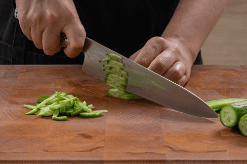 Cut fresh cucumbers into the same thin strips.