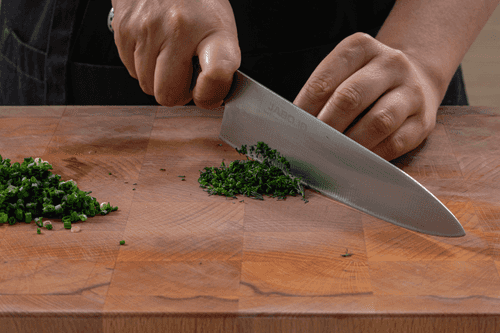 Chop the dill finely. Slice the green onion into rings.