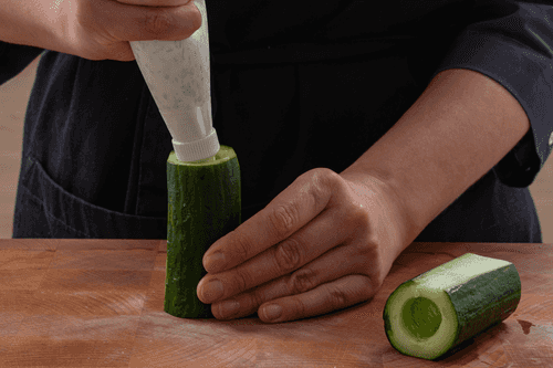Fill the cucumbers with cheese mixture and put them in the refrigerator for 1 hour or more.