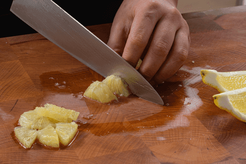 Peel the lemon and slice it into thin slices.