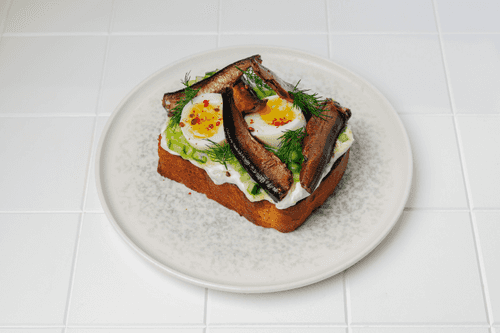 Sandwich with sprats and creamy mousse