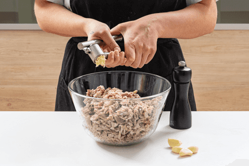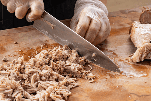 Separate the meat from the bones and chop it finely. The skin and fat can be left or removed depending on preference.