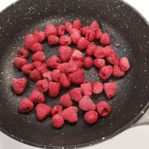 Place the raspberries on a hot pan greased with 1 teaspoon of oil.