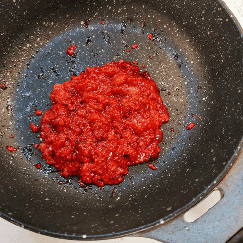Add wine vinegar after 1 minute. Stir and simmer for another 2 minutes.