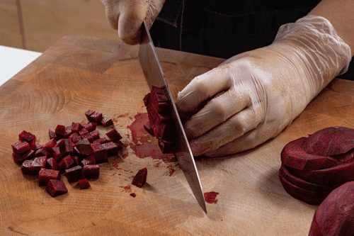 Peel the beetroot and cut it into small cubes.