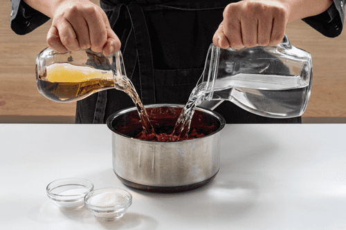 In a small saucepan, mix vinegar, water, sugar, salt, and beetroot. Bring to a boil, remove from heat, and let it cool completely.