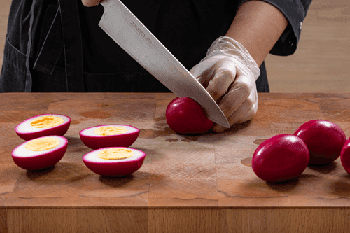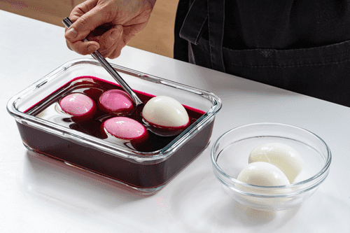 Stuffed eggs in beetroot marinade