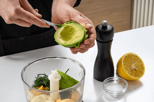 Transfer the yolks to a blender, add avocado flesh, mayonnaise, lemon juice, salt, pepper, and dill. Mix until smooth.