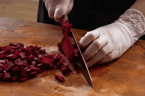 Peel the beetroot and cut it into small cubes.