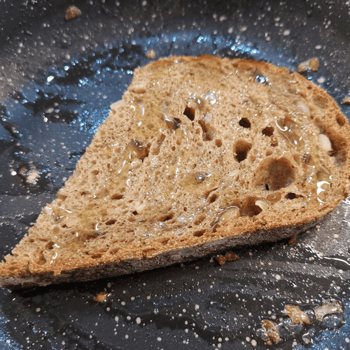 Once the bottom side of the bread is browned, flip it. Fry for another minute over medium heat.