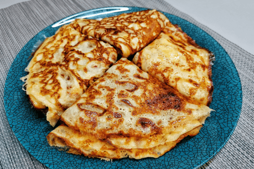 Блины по-деревенски – это настоящее воплощение русской кухни, пропитанное духом деревенского уюта. Их история уходит корнями в традиционные русские застолья, когда на столе всегда присутствовала пышная, ароматная выпечка. Эти блины готовятся на кефире, что придаёт тесту лёгкость и приятную кислинку, а добавление кукурузного крахмала делает их особенно нежными. Начинка из сливочного масла и яиц добавляет насыщенность вкуса, делая блюдо питательным и согревающим. Идеально подходят для семейного завтрака или уютных вечеров с чашкой горячего чая. Подаются блины, сложенные треугольниками, что делает их удобными для сервировки и аппетитными на вид. Это блюдо – символ домашнего тепла, простых радостей и традиционного русского гостеприимства.