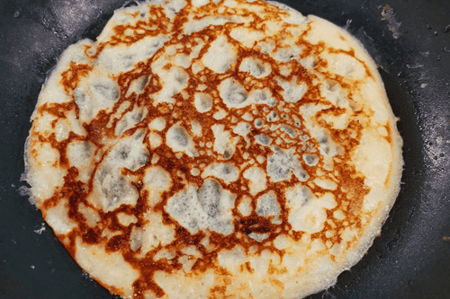 When the pancake is golden brown, flip it and fry for another 2 minutes over medium heat.