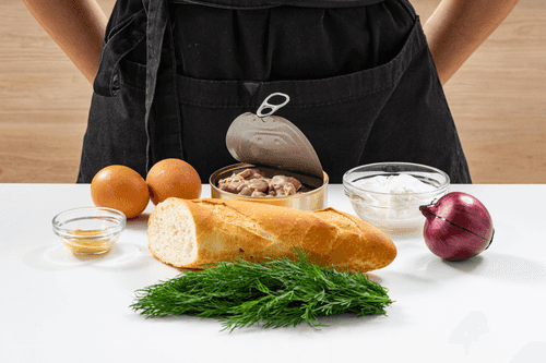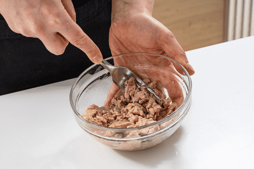 Drain the liquid from the canned cod liver, mash it well with a fork, and place the liver in a bowl.