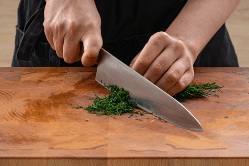 Chop the dill finely and place it in a bowl. Leave a few sprigs for decoration.