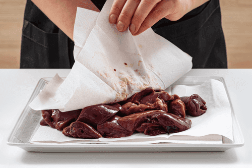 Pat the liver dry with paper towels.