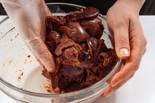 Coat the liver in a spice mix and refrigerate for 2 hours.
