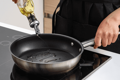 Heat vegetable oil in a thick-walled pan.