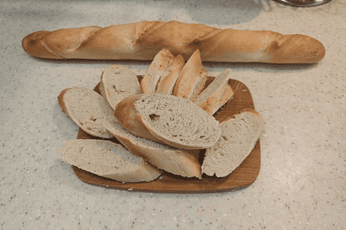 Slice the baguette into 1 cm wide pieces.