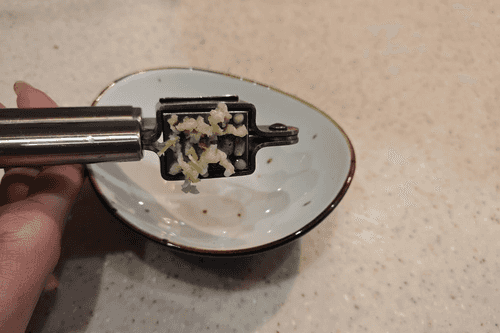 Press the garlic into a small container.