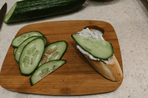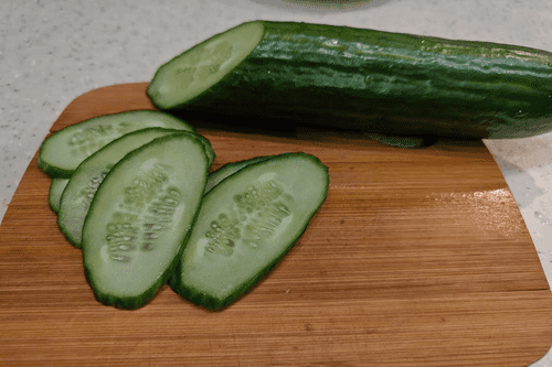 Slice the cucumber into thin slices. If desired, you can cut the circles in half.