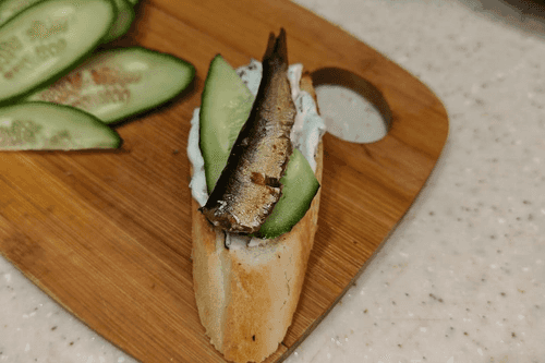 Sandwiches with sprats and cucumber