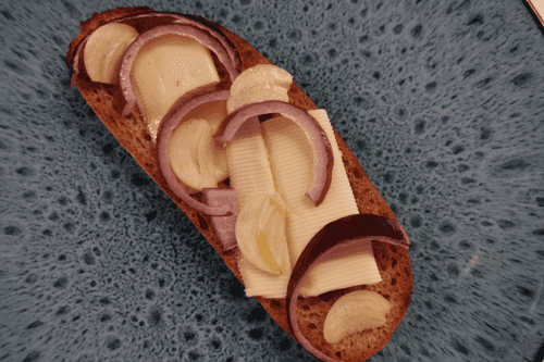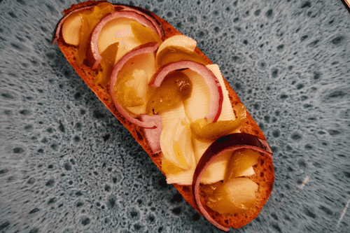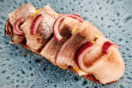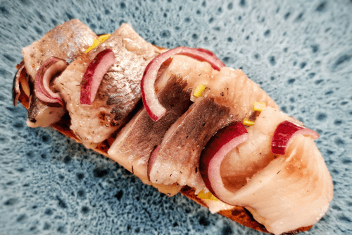 Bruschetta with herring and jalapeño is a bold interpretation of a classic European appetizer, combining the delicate oiliness of herring with the spicy heat of jalapeño. Crispy bread infused with the aroma of butter creates the perfect base for this gastronomic contrast. The light sweetness of red onion softens the spiciness of garlic, while thin slices of pepper add vibrant flavor accents. This dish is perfect as an aperitif before the main dinner or as part of a cozy evening with loved ones. Bruschetta with herring and jalapeño can adorn any table, surprising with its combination of simplicity and sophistication. Historically, bruschetta originated in Italy as a way to use up yesterday's bread, and this version demonstrates how traditions can transform by connecting different culinary cultures.