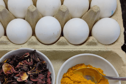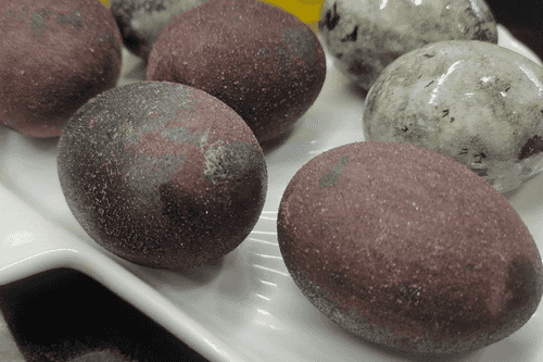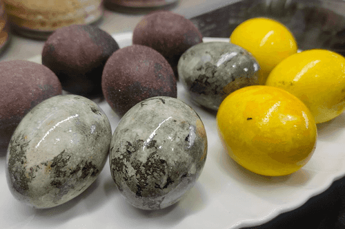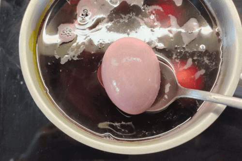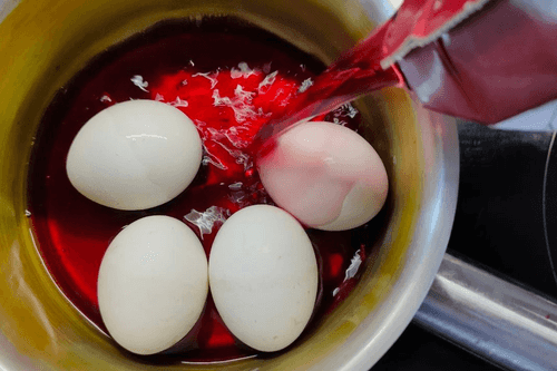 Eggs dyed in red wine