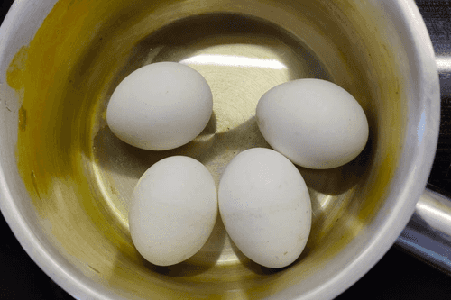 Put the eggs in the pot.